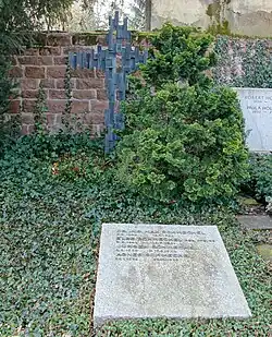 Sein Grab auf dem Hauptfriedhof Mannheim besteht aus einem hohen Bronzekreuz, wobei die Oberfläche aus Kuben und Aussparungen zusammengesetzt wurde.[3]