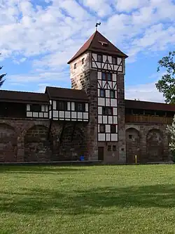 Der Abschnitt der Stadtmauer zwischen Maxtor und Laufer Tor heißt Maxtormauer. Danach wurden die innerhalb der Mauer liegende Gasse Maxtormauer und die außerhalb gelegene Straße Maxtorgraben benannt. Südlich sind die Sieben Zeilen gelegen. Im Osten, am nördlichsten Punkt der Maxtormauer, steht der Küblerzwinger. Er wurde 1527 als zweite Rundbastion in Nürnberg errichtet und zunächst „Backofen“ genannt[SL 2]. Im östlichen Abschnitt befand sich bis in die 1960er Jahre eine kleine Polizeidienststelle.