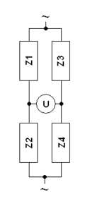 gilt. Dabei sind der Realteil und der Imaginärteil zu betrachten. Stehen Real- und Imaginärteil in beiden Brückenzweigen im gleichen Verhältnis zueinander, ist die Brücke in Phase und Amplitude abgeglichen (U wird Null).
