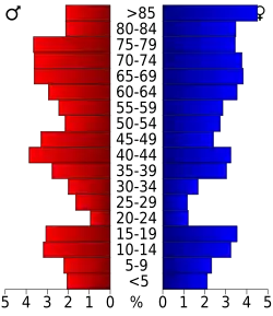 Auf das gesamte County bezogen setzte sich die Bevölkerung zusammen aus 19,40 % Einwohnern unter 18 Jahren, 4,60 % zwischen 18 und 24 Jahren, 19,40 % zwischen 25 und 44 Jahren, 22,40 % zwischen 45 und 64 Jahren und 34,20 % waren 65 Jahre alt oder darüber. Das Durchschnittsalter betrug 51 Jahre. Auf 100 weibliche Personen kamen 91,5 männliche Personen. Auf 100 Frauen im Alter von 18 Jahren oder darüber kamen statistisch 91,7 Männer.