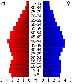 23,9 Prozent der Bevölkerung waren unter 18 Jahre alt, 8,4 Prozent zwischen 18 und 24, 28,5 Prozent zwischen 25 und 44, 24,8 Prozent zwischen 45 und 64 und 14,3 Prozent waren älter als 65. Das Durchschnittsalter betrug 38 Jahre. Auf 100 weibliche Personen kamen statistisch 93,4 männliche Personen und auf 100 Frauen im Alter von 18 Jahren und darüber kamen 89,8 Männer.