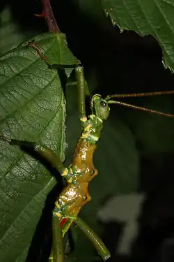 - ↑ a b c Alexander Esch: Stabschrecken, Gespenstschrecken, Wandelnde Blätter: Erfolgreiche Haltung von Phasmiden. Natur und Tier-Verlag, Münster 2012, S. 78–80, ISBN 978-3-86659-221-6