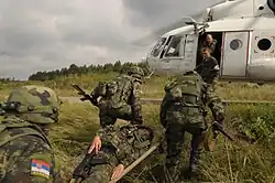 In akuten Konfliktsituationen verfügen die meisten Militärs über ein Evakuierungs- bzw. Unterstützungsprotokoll, das den Transport von Verletzten oder auch das Zubringen von Sanitätsfachpersonal regelt. Im Normalfall werden diese 'MedEvac'-Einsätze von Hubschraubern geflogen, da sie für Evakuierungseinsätze während laufender Gefechte aufgrund ihrer Flexibilität am besten geeignet sind.