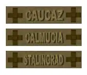 Zu der Medaille wurden für die kämpfende Truppe Gefechtsspangen mit der Bezeichnung des Kriegsschauplatzes bzw. Kampfschauplatzes verliehen. Für Zivilisten oder Soldaten der rückwärtigen Gebiete wurde die Medaille grundsätzlich ohne Gefechtsspangen verliehen. Die Gefechtsspangen waren entweder in Bronze gehalten oder auch versilbert. Die Spangen selber wurden auf dem Medaillenband rückseitig mit zwei seitlich befestigten Biegelaschen befestigt (umgebogen). Ihre Breite variierte dabei von 25 mm oder 35 mm, abhängig von der Breite des verliehenen Ordensbandes. Bisher sind 14 Spangen bekannt
