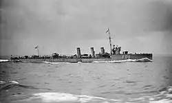 | Antrieb | Yarrow-Dampfkessel, Brown-Curtis-Dampfturbinen 25.000 PSw auf 3 Wellen |