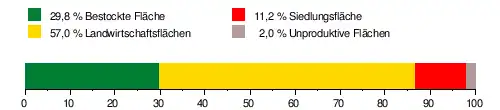 Es besteht zu 29,8 % aus bestockter Fläche, zu 57,0 % aus Landwirtschaftsfläche, zu 11,2 % aus Siedlungsfläche und zu 2,0 % aus unproduktiven Flächen.