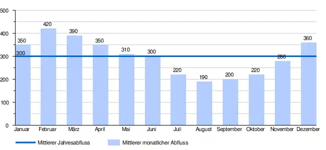 - ↑ Mittlere Abflüsse (m³/s) und Abflussregimetyp für das Gewässernetz der Schweiz (Bundesamt für Umwelt BAFU).
