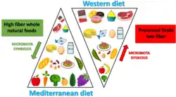 Die Mediterrane Ernährung kann als Pflanzenbasierte Ernährung angesehen werden.[32] Sie ist aber nicht vegetarisch oder vegan.