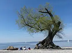 Am Ende des Wocherhafen-Dammes steht eine alte Silberweide. Die Erde wurde im Lauf der Jahrzehnte weggeschwemmt, nun stehen die Wurzeln 1,8 m hoch in der Luft. Der Damm darf betreten werden und dient ebenfalls als Badeplatz.