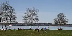 Beim Campingplatz „Seecamping“ gibt es eine weitere öffentliche Badestelle mit Liegewiese und einem sehr flachen Sand-Kiesstrand. Auch hier gibt es Feuerstellen. Die angrenzenden Schilfflächen dürfen nicht betreten werden.