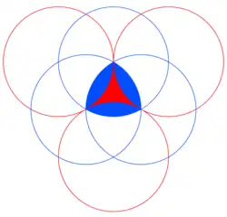 Das Reuleaux-Dreieck kann invertiert werden, indem die Kreise das gleichseitige Dreieck nicht erweitern, sondern es verkleinern.