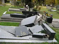 Zwischen 2004 und 2012 wurde der Meidlinger Friedhof regelmäßig von Vandalen heimgesucht. So brachen etwa am 16. Oktober 2004 Vandalen in die Aufbahrungshalle ein, wo sie den Sarg einer Aufgebahrten auf den Boden geworfen haben, die dabei aus dem Sarg fiel.[4] In der Folge kam es laufend zu mehr oder weniger umfangreicheren Grabschändungen: allein Ende November 2009 wurden 55 Gräber demoliert.[5] Im Herbst 2010 kam es zu besonders massiven Zerstörungen: alleine im September und Oktober 2010 wurden an die 250 Gräber (Grabsteine und Grabplatten) demoliert, was einen geschätzten Sachschaden von 300.000 Euro ausmacht.[6][7] Auch im November 2011 kam es zu Verwüstungen.[8]