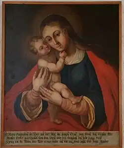 Das Gnadenbild Mariahilf an der linken Chorbogenwand stammt aus der ursprünglichen Kapelle. Franz Josef Weiss malte 1790 diese Kopie. Er fügte am unteren Bildrand ein Mariengebet ein.