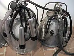 Melkmaschinen werden seit dem 19. Jahrhundert eingesetzt,[13] elektrisch betriebene seit Anfang des 20. Jahrhunderts.[14]