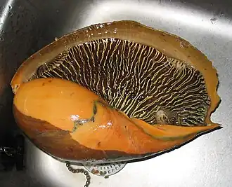 - ↑ Brian Morton (1986): The diet and prey capture mechanism of Melo melo (Prosobranchia: Volutidae). Journal of Molluscan Studies 52 (2), S. 156–160.