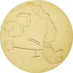 Ein sogenannter token ‚Marke‘ mit einem Durchmesser von 6,5 cm zeigt die Position des Archivs mittels eines Fadenkreuzes. Neben den Küstenlinien Europas zeigt er auch einen Umriss des Hallstätter Sees mit der genauen Lage des Eingangs.