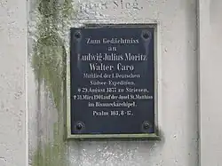 Am 30. März abends befahl Caro die Reinigung aller Mauser-Gewehre.[8] Als am Morgen des 1. April Einheimische das Lager der Expedition angriffen, waren die Waffen nicht einsatzbereit, da sie von den Polizisten zerlegt worden waren. Mencke und Caro schliefen noch in ihrem Zelt, während Heinroth schon aufgestanden war. Der Unteroffizier Tapitan weckte Mencke,[9] um ihm mitzuteilen, dass Insulaner in der Nähe des Lagers gesehen wurden. Mencke verkannte den Ernst der Situation, beschwichtigte Tapitan und legte sich wieder hin. Unmittelbar danach griffen die Einheimischen das Zelt der Europäer mit Speeren an. Caro wurde getötet, Mencke schwer verletzt. Heinroth verteidigte sich trotz einer Beinverletzung mit seiner Pistole, Krebs, der ebenfalls verwundet wurde, konnte Mencke zum Strand tragen und in eines der Boote legen.[8] Die Polizisten, die inzwischen ihre Gewehre schussbereit machen konnten, deckten den Rückzug der Expedition, bei dem die Leichen von Caro und zwei Polizeisoldaten zurückgelassen werden mussten. Unter den Angreifern gab es etwa 17 Verletzte.[7][9] In Kaleu,[8] einer Handelsstation auf einer benachbarten Insel,[7] erlag Mencke am 2. April 1901 seinen Verletzungen. Er wurde in unmittelbarer Nähe der Station beerdigt. Tapitan, der mit einigen Polizisten am selben Tag zum Lager zurückkehrte, musste feststellen, dass die drei Leichen verschwunden waren. Nach zeitgenössischen Ansichten muss davon ausgegangen werden, dass sie verzehrt wurden,[9] ein Beweis und damit die letzte Gewissheit fehlen jedoch. Nach der Rückkehr der Eberhard verließ Heinroth die Insel. Die Forschungsreise hatte ein vorzeitiges Ende gefunden.[8] Caros Familie brachte am Familiengrab Caro auf dem Dresdner Johannisfriedhof eine Gedenktafel für Caro an.