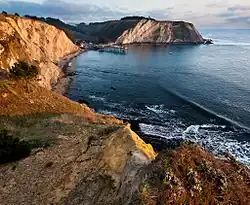 • Der Ort Caspar mit ca. 500 Einwohnern[11] besitzt zwei Strände: im Süden der Caspar Beach zwischen Doyle Creek und Caspar Creek, im Norden der Jug Handle Beach an der Mündung des durch den Park Jughandle State Reserve fließenden Jug Handle Creek. Er wurde nach dem deutschen Bauern Siegfried Caspar benannt, der 1857 hierherkam.[12] Im Ort gab es von 1861 bis 1955 eine Sägemühle,[13] die sich so lange halten konnte, indem sie das Gebiet für den Holzeinschlag immer weiter vergrößerte. Sie betrieb bis 1945 ein Schienennetz von zuletzt 35 Meilen,[14] das aber niemals mit einer Hauptlinie verbunden war.[15] Die Grundmauern der alten Sägemühle sind immer noch an der Mündung des Caspar Creek zu finden.[12]