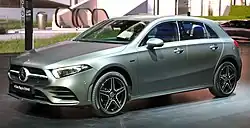 Eine Variante mit Plug-in-Hybrid-Antrieb wurde im August 2019 vorgestellt. Der A 250 e wird als Schrägheck und Limousine produziert und wird vom 1,3-Liter-Ottomotor des Typs M 282 mit 118 kW (160 PS) in Kombination mit einem 75 kW (102 PS) starken Elektromotor angetrieben. Die Systemleistung gibt Mercedes-Benz mit 160 kW (218 PS) an. Der Lithium-Ionen-Akkumulator hat eine Kapazität von 15,6 kWh und ermöglicht eine elektrische Reichweite von bis zu 75 Kilometern.[9] Das Fahrzeug ist gegen Aufpreis mit einer CCS-Schnelllademöglichkeit ausgestattet.