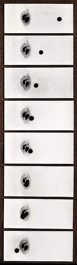 Somit konzentrierte man sich bei späteren Transiten darauf, die kleine Scheibe des Merkurs selbst zu beobachten. Man untersuchte vor allem, ob der Planet einen Mond besitzt, außerdem suchte man Nachweise für eine Atmosphäre und versuchte, weitere Phänomene bei einem Transit festzustellen.[9] Die Suche nach einem Mond blieb vergeblich.