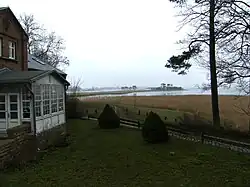 - Gristower Kirche aus dem 14. Jahrhundert, mit Schule und Pfarrhaus