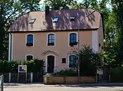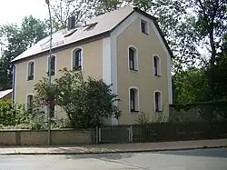 Das Mitte des 19. Jahrhunderts errichtete zweigeschossige, traufständige Gebäude hat einen rechteckigen Grundriss und ein Krüppelwalmdach. Es hat Ecklisenen und zu allen Seiten Stichbogenfenster. An der Ostseite befindet sich ein Stichbogenportal.