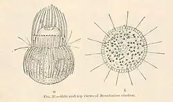 - ↑ Mesodinium-Arten besitzen eine besondere Art von Anhängseln, Tentakeln genannt, die von anderen Protisten nicht bekannt sind.[8]