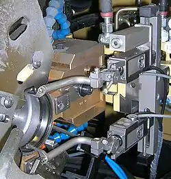 Das aktuelle Maß eines Werkstücks wird während der Bearbeitung durch einen Messtaster erfasst. Die Bewegungen des Messtasters können erfasst werden, sodass de Maschinensteuerung entscheiden kann, wie das Werkzeug zu bewegen ist (Vorschubgeschwindigkeit, Richtung).