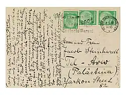 - ↑ Franziska Bogdanov: Montag, 11. September 1933: Postkarte von Meta Abramczyk an Familie Steinhardt in Tel Aviv auf der Website des Jüdischen Museums Berlin, abgerufen am 27. März 2025.