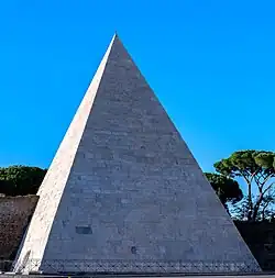 Die oben erwähnte Textstelle von Pseudo-Acron aus dem 5. Jahrhundert ist der früheste Nachweis der Pyramide. Vermutlich ist sie – ähnlich wie die Cestius-Pyramide – schon in den frühen Regierungsjahren Kaiser Augustus errichtet worden.[7] Die Einverleibung Ägyptens in das Römische Reich machte die Kultur dieses Landes in Rom sehr populär, was nicht nur in der Religion (Ausbreitung des Isis-Kultes), sondern auch in der Architektur seinen Niederschlag fand.[8] So ist neben der Cestius-Pyramide und der Meta Romuli die Existenz von mindestens zwei weiteren Pyramidenbauten im Bereich der heutigen Piazza del Popolo bekannt.