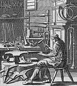 Die Herstellung der Blechblasinstrumente blieb lange Zeit über eine Domäne der Schmiede, von denen Olifanten, Jagdhörner oder Fanfaren aus Metall als ganzes Stück gegossen, oder aus kurzen Metallrohren gebogen wurden. Da die solcherart hergestellten Instrumente sehr kurz waren, konnten Bläser darauf meist nur einen oder zwei Naturtöne spielen. Zu Beginn des 16. Jahrhunderts gelang es erstmals, aus einer geeigneten Legierung (Messing mit 75 % Kupfer) flache Platten zu walzen, zu Rohren zu formen und mehrere solcher Teile zusammenzufügen, was die Herstellung längerer Blechblasinstrumente hoher Qualität ermöglichte und ihnen auf lange Sicht die Mitwirkung im Orchester eröffnete. Es ist anzunehmen, dass zu dieser Zeit einige Schmiede begannen, sich auf den Instrumentenbau zu spezialisieren.
