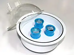 Die herausgetrennten Proben sollten zunächst entgratet werden. Anschließend empfiehlt sich die Ultraschallreinigung in einem Becherglas mit Ethanol, um die Proben zu entfetten. Anschließend werden die Proben mittels Schlifftrockner getrocknet. Poröse und rissbehaftete Proben sollten länger getrocknet werden, damit das Ethanol vollständig wegtrocknen kann. Das weitere Handling der Proben sollte nur noch mit einer Ätzzange oder Pinzette erfolgen.