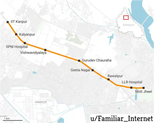 - ↑ Kanpur Metro – Information, Route Maps, Fares, Tenders & Updates. In: The Metro Rail Guy. Abgerufen am 24. September 2023 (englisch).