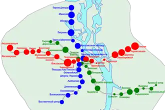 - ↑ Kyiv Metro Website: Київський метрополітен. In: Вікіпедія. 28. Januar 2022 (kyiv.ua [abgerufen am 4. Februar 2022]).