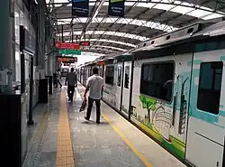 Die Metro Kochi ist ein U-Bahn-System in Kochi, Kerala, Indien. Die U-Bahn gehört der Kochi Metro Rail Limited und wird von ihr betrieben. Die Metro Kochi wurde innerhalb von 4 Jahren nach Baubeginn eröffnet und ist damit eines der am schnellsten fertiggestellten Metro-Projekte in Indien.[2][3] Die Metro Kochi ist die erste U-Bahn in Indien, die eine Verbindung zwischen den Infrastrukturnetzen der Eisenbahn, der Straße und dem Wasser ermöglicht.[4] Die Kosten der ersten Phase wurden mit 51,81 Milliarden indischen Rupien veranschlagt (650 Millionen US-Dollar).[5] Im Rahmen der internationalen Konferenz der Urban Mobility Indien wurde das System durch das Ministerium für Wohnungsbau und städtische Angelegenheiten als bestes Projekt der urbanen Mobilität in Indien bezeichnet.[6] Die Kochi Water Metro, ein Netz von Fähren, ist in die Metro Kochi integriert und dient als Zubringer für Einwohner der Vororte Kochis.
