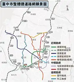 Im Jahr 2009 war eine vierte Linie geplant, um die Stadt mit dem Flughafen Taichung zu verbinden. Nachdem jedoch mehrere Vorschläge zum Bau einer MRT- und BRT-Linie vom Ministerium für Verkehr und Kommunikation abgelehnt wurden, wandte sich die Stadtregierung einem Stadtbahn-System zu. Während die Strecke noch in der Planungsphase war, wurde erneut auf eine Metro-Bauweise umgestellt. Im Jahr 2019 wurde das LRT-Projekt durch das Metro-Projekt ersetzt. Im Jahr 2021 wechselte das LRT-Projekt wieder zum ursprünglichen MRT-Projekt.