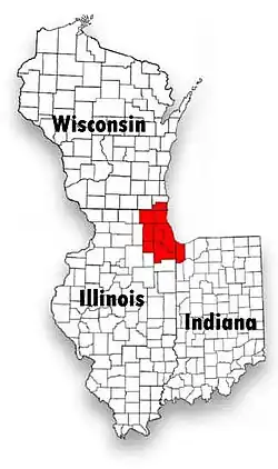 Die Metropolregion Chicago (auch Chicagoland genannt) erstreckt sich über die US-Bundesstaaten Illinois, Indiana und Wisconsin.