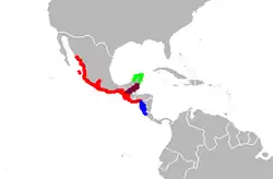Das Areal der Art umfasst überwiegend küstennahe Bereiche in Mittelamerika. An der Pazifikküste reicht die Verbreitung vom südlichen Sonora im nördlichen Mexiko nach Süden bis Costa Rica. Das Verbreitungsgebiet in Atlantiknähe ist wesentlich kleiner und auf die Halbinsel Yucatan und den Norden von Belize beschränkt. Die meisten Nachweise liegen aus Höhen unter 600 m vor, maximal wurde die Art im westlichen Mexiko in 1500 m Höhe festgestellt.