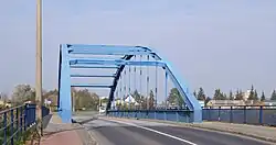 1920 wurde die hölzerne Doppelklappbrücke durch eine Stahlbetonkonstruktion ersetzt. Zum Ende des Zweiten Weltkriegs wurde die Brücke durch abziehende deutsche Truppen zerstört. Ein Brückenneubau wurde 1956 fertiggestellt. Es ist eine Stabbogenbrücke mit genieteten Stahlprofilen. In den Jahren 1996 bis 1998 erfolgten umfangreiche Instandsetzungsmaßnahmen.