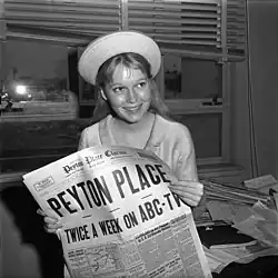 Im September 1963 drehte sie den Pilotfilm zur Fernsehserie Peyton Place und danach den Film Schüsse in Batasi (1964) mit Richard Attenborough in der Hauptrolle. Im Anschluss daran widmete sich Farrow wieder den Dreharbeiten zu Peyton Place. Die Serie wurde in den USA von einem Millionenpublikum verfolgt und Farrow zum nationalen Fernsehstar. 1965 wurde sie mit dem Golden Globe Award als beste Nachwuchsdarstellerin ausgezeichnet.[6] Es folgten sieben weitere Nominierungen für diesen Preis. 1966 verließ Farrow die Fernsehserie.