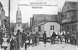 - ↑ „...Drzymała erhebt gegen das Verbot Einspruch beim Regierungspräsidenten in Posen und klagt schließlich vor dem Königlich-Preußischen Oberverwaltungsgericht in Berlin. Das entscheidet im Mai 1909 letztinstanzlich ... gibt Michał Drzymała Recht, indem es über den Wagen befindet: ‚Er ist ein Transportmittel, aber kein Bauwerk im Sinne der Bauordnung...‘ Andererseits wendet es die Ansiedlungsnovelle von 1904, in der nur von Wohnhäusern die Rede ist, auf Drzymałas Wagen an, in dem es sie interpretiert: ‚Damit hat nicht jede andere Art wohnlicher Besiedelung freigegeben werden sollen, vielmehr bedarf es nach der Absicht des Gesetzes der darin vorgeschriebenen Genehmigung auch da, wo eine ...Wohnstätte ...in anderer Weise als durch bauliche Anlagen beschafft wird.‘ Drzymała darf sich endgültig nicht auf seinem Grundstück niederlassen. Weder in der Scheune noch in seinem Wohnwagen.“ Mit List und Gesetz ( des vom 12. Oktober 2007 im Internet Archive) Info: Der Archivlink wurde automatisch eingesetzt und noch nicht geprüft. Bitte prüfe Original- und Archivlink gemäß Anleitung und entferne dann diesen Hinweis. DeutschlandRadio Berlin 2004, abgerufen am 15. Dezember 2018.