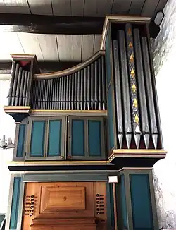 II/P | 12 | Das Instrument hat einen historischen Prospekt („Spiegelprospekt“ mit hängenden Pfeifen) von 1732[8][9] und wurde im Eröffnungskonzert der ersten Tage Alter Musik in Herne präsentiert. → Orgel der Berchumer Kirche |