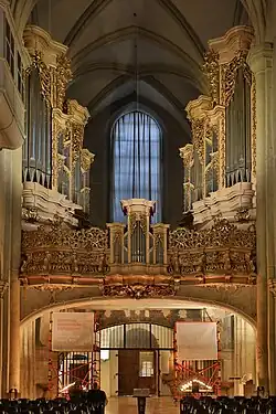 - ↑ Wolfgang Sauseng im Interview: […] Im Kapitelsaal des Klosters, wo die Proben stattfanden, lagen Orgeltrümmer herum, auch der Spieltisch stand da. Bei jeder Probe haben Chormitglieder irgendwas von diesen Orgelteilen mitgenommen, als Andenken, als Spielzeug für die Kinder, zum Basteln. […]; Manuel Schuen: Interviews zur Restaurierung der Sieber-Orgel – Erinnerungen und Erzählungen von Protagonisten. In: Erwin Ortner, Wolfgang Sauseng, Andreas Peterl (Hrsg.): Wiener Beiträge zur Orgel und Kirchenmusik. Institut für Orgel, Orgelforschung und Kirchenmusik Universität für Musik und darstellende Kunst Wien. Band 3, Wien 2015, S. 216–232, hier S. 217.