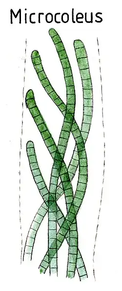 - ↑ a b Microcoleus (Cyanobacteria). Auf: A. L. Baker (Hrsg.): PhycoKey. University of New Hampshire.