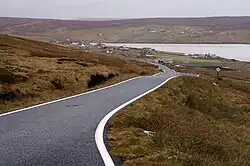 Die, am Rande des Ortes verlaufende A968 verbindet Ulsta im Südwesten mit Gutcher im Nordosten der Insel.[5]