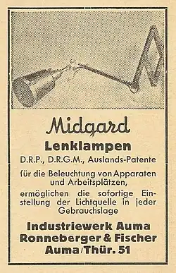 Die Midgard Licht GmbH ist eine Leuchtenfirma, die sich aus dem 1912 gegründeten, 1919 von Curt Fischer (1890–1956) übernommenen und neu ausgerichteten Unternehmen Industriewerk Auma Ronneberger & Fischer entwickelt hat. Curt Fischer gilt als Erfinder des lenkbaren Lichts. Mit seinen Leuchten wurden unter anderem die Ateliers und Wohnungen im Bauhaus Dessau eingerichtet.