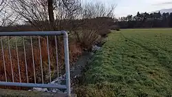 Auf der anderen Seite fließt er dann wieder offen neben der sich nirgends sehr weit vom Ortsrand entfernenden, nach Steinwenden führenden Landesstraße 366 und der Feldflur zu Rechten. Nach ca. 800 Metern knickt er um die südwestliche Siedlungsspitze Miesenbachs herum nach Südsüdosten ab, hierbei unterquert er die Landesstraße und die Bahnstrecke Landstuhl-Kusel. Nach seinen letzten ca. 150 Metern, auf der er Stadtgrenze zu Steinwenden ist, mündet er in den westwärts laufenden Mohrbach.