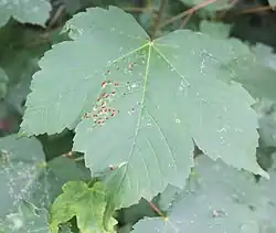 - Ahorn-Gallmilbe oder Hörnchengallmilbe (Aceria macrorhyncha)