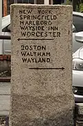 Unter der Bezeichnung 1767 Milestones („1767 Meilensteine“) sind die noch erhaltenen, entlang der Boston Post Road von Boston bis Springfield aufgestellten Meilensteine als Historic District im National Register of Historic Places (NRHP) eingetragen. Die Namensgebung bezieht sich dabei nicht auf die Anzahl, sondern auf das Jahr 1767, in dem die letzten Steine zur Vervollständigung errichtet wurden. Im gesamten Bundesstaat Massachusetts der Vereinigten Staaten existieren gemeinsam mit diesen 40 Meilensteinen noch 129 originale Wegmarkierungen.[1]