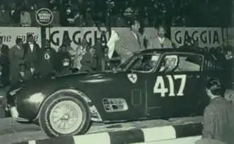 De Portago kam mit Vollgas an, als der Wagen links einen Kilometerstein berührte und außer Kontrolle geriet. Der Ferrari prallte seitlich an einen Telegrafenmast, drehte sich um die eigene Achse und schlug mit voller Wucht rechts in einer Böschung ein. De Portago hatte keine Chance mehr, den rotierenden Wagen abzubremsen.[6] Wie immer säumten Tausende Zuschauer die Strecke. Tragischerweise stand genau an der Unfallstelle eine Gruppe Ortsansässiger mit ihren Kindern ganz knapp am schmalen Asphaltband, als der Ferrari genau dort zu liegen kam. Es gab elf Tote: de Portago starb an den furchtbaren Schnittverletzungen, die ihm die lose Motorhaube zufügte. Sein Beifahrer und neun Einheimische, darunter fünf Kinder, starben an den Folgen des Unfalls. 20 weitere Personen wurden zum Teil schwer verletzt.